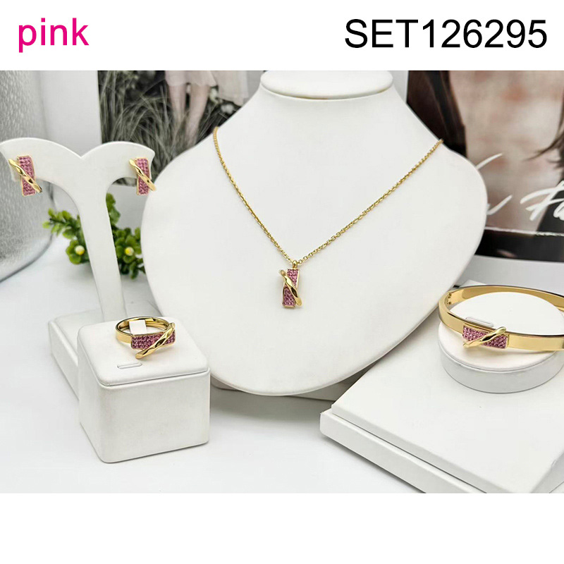 Home > Level B Stainless Steel New Trendy Women Jewelry Clay Sticky Pink Rhinestone Golden 4pcs SET
