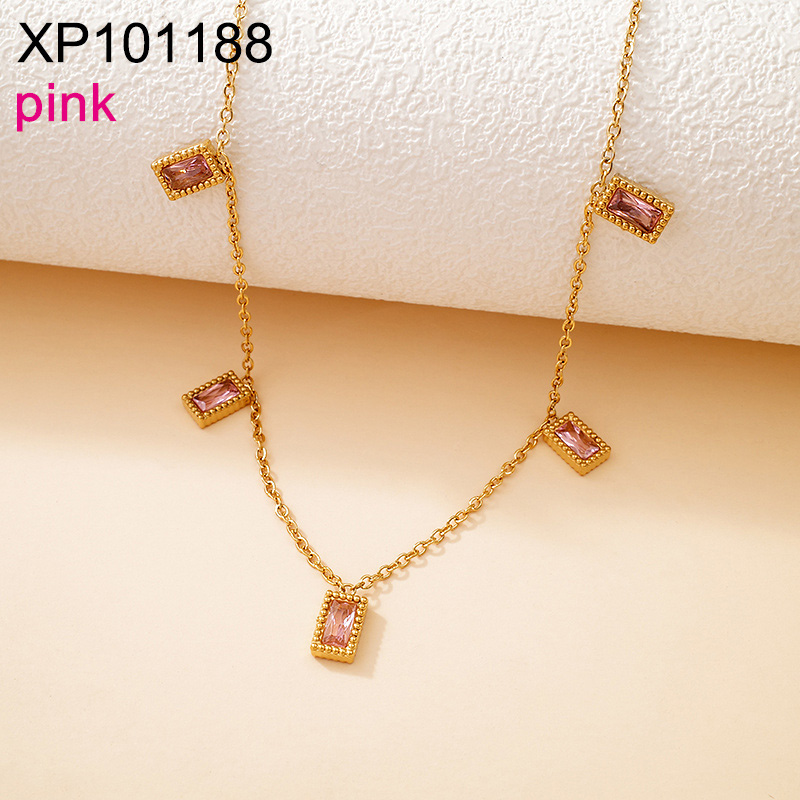 Level B Stainless Steel New Trendy Women Jewelry Rectangle Pink Crystal zirconium Golden Pendant