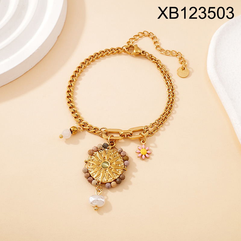 Level B Stainless Steel New Trendy Women Jewelry Pearl Style/Plastic Beads Golden Bracelet
