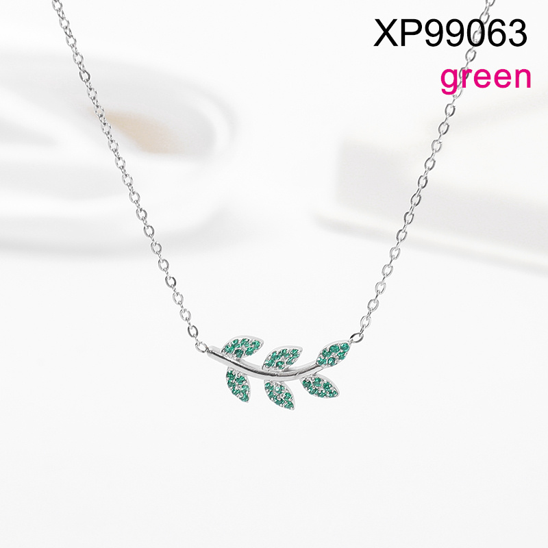 Level A Stainless Steel New Trendy Women Jewelry Green Stone Leaf Steel color Pendant