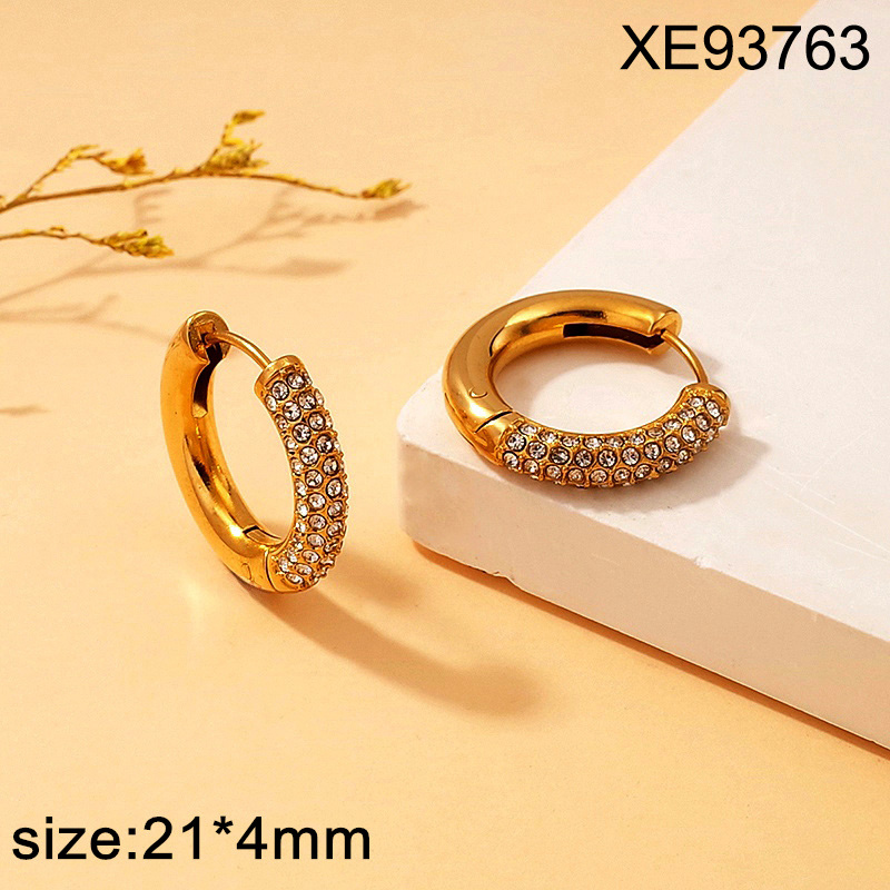 Home > Level A Stainless Steel New Trendy Women Jewelry Sticky Stone Round Golden Zircon Hoop Earrings