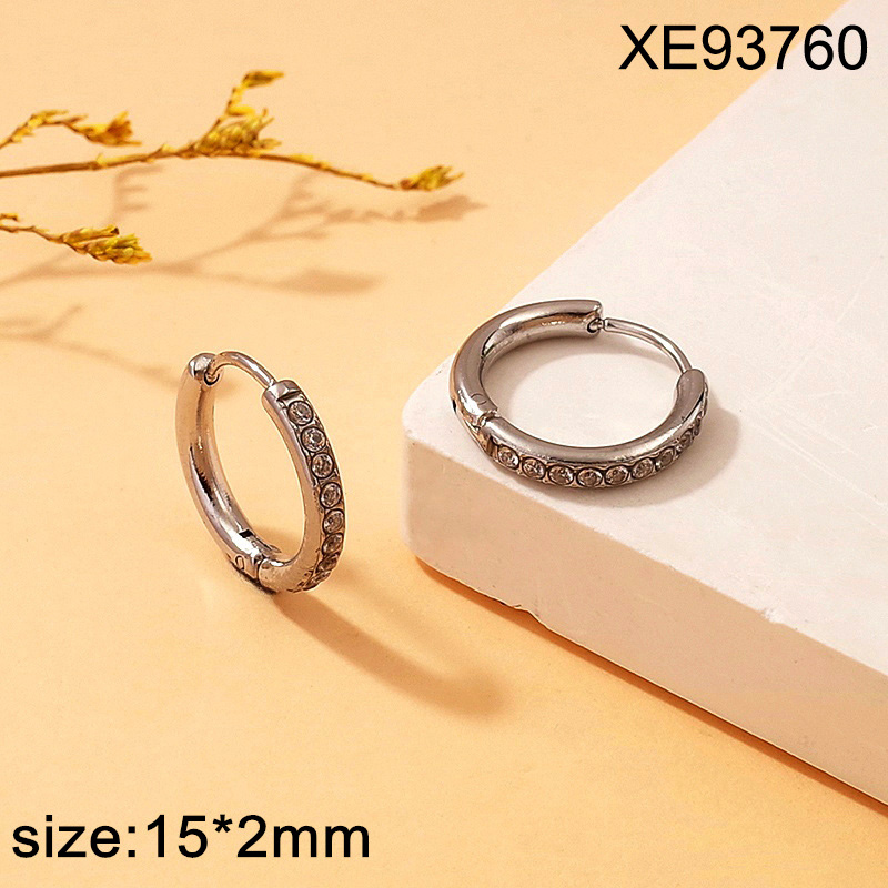 Level A Stainless Steel New Trendy Women Jewelry Sticky Stone Round Steel color Zircon Hoop Earrings