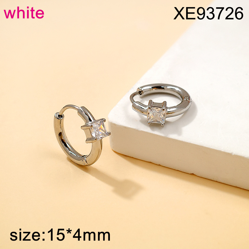 Home > Level A Stainless Steel New Trendy Women Jewelry Studded Square White Zircon Steel color Hoop Earrings