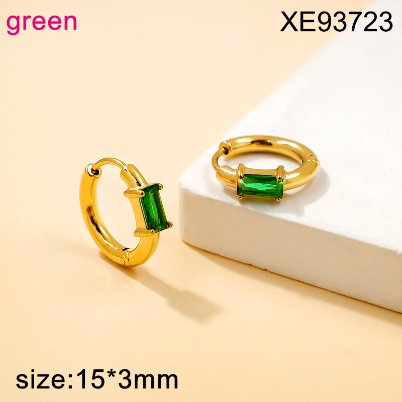 Home > Level A Stainless Steel New Trendy Women Jewelry Studded Rectangle Green Zircon Golden Hoop Earrings