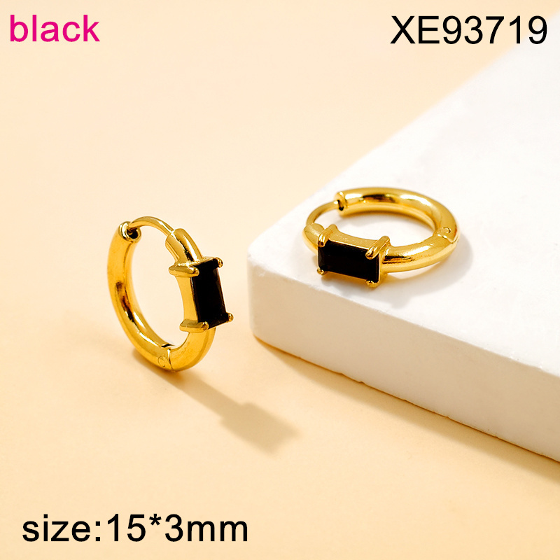 Home > Level A Stainless Steel New Trendy Women Jewelry Studded Rectangle Black Zircon Golden Hoop Earrings