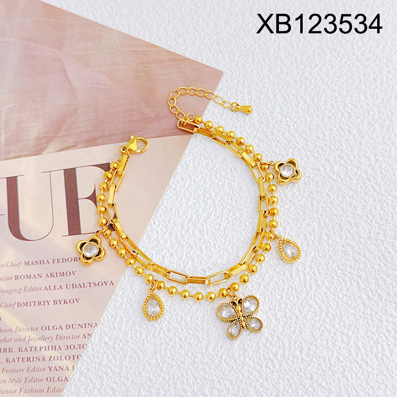 Home > Level B Stainless Steel New Trendy Women Jewelry Two Layers Chain Animal Butterfly Golden Bracelet