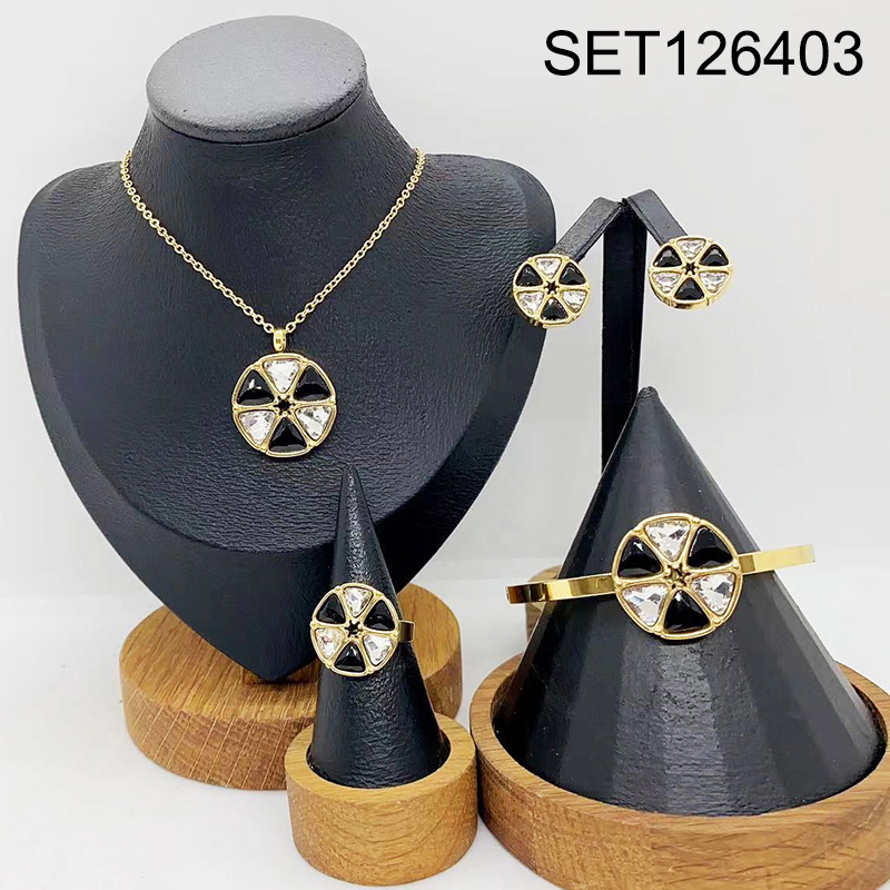 Home > Level B Stainless Steel New Trendy Women Jewelry Triangle Glass Golden 4pcs SET