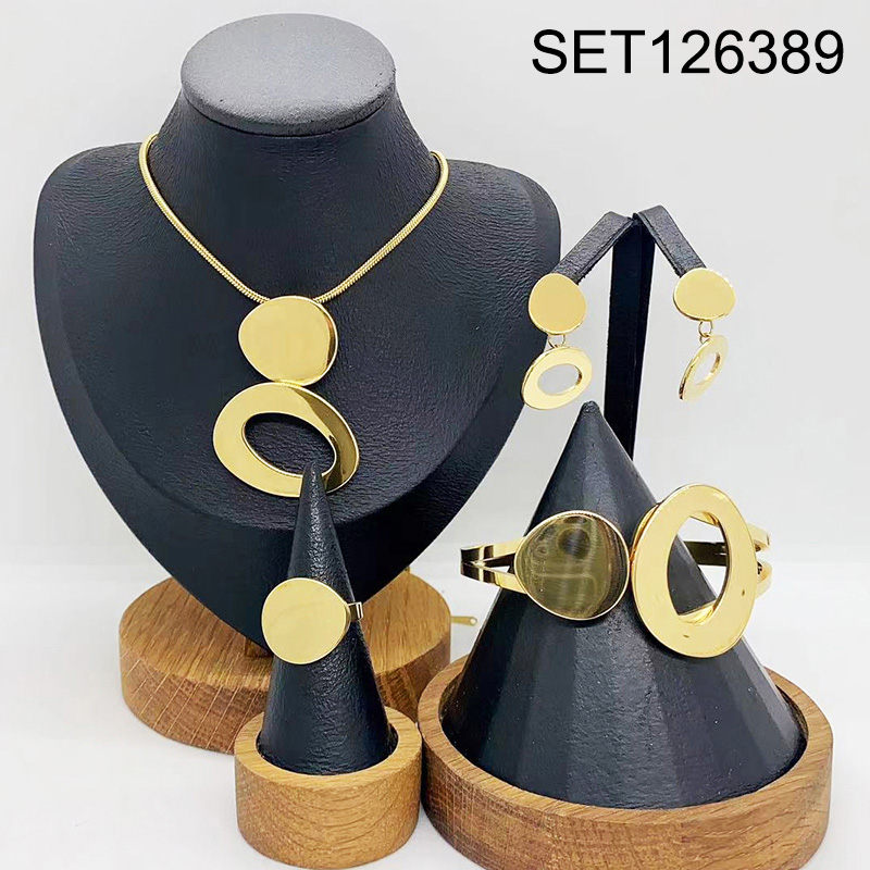 Level B Stainless Steel New Trendy Women Jewelry Oval Golden 4pcs SET