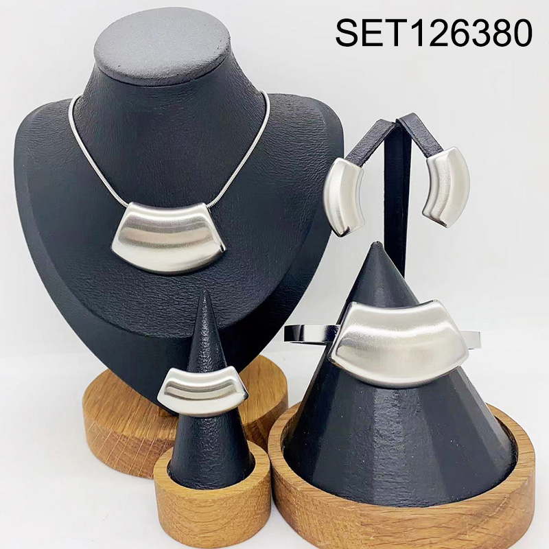 Level B Stainless Steel New Trendy Women Jewelry Fan-shaped Steel color 4pcs SET