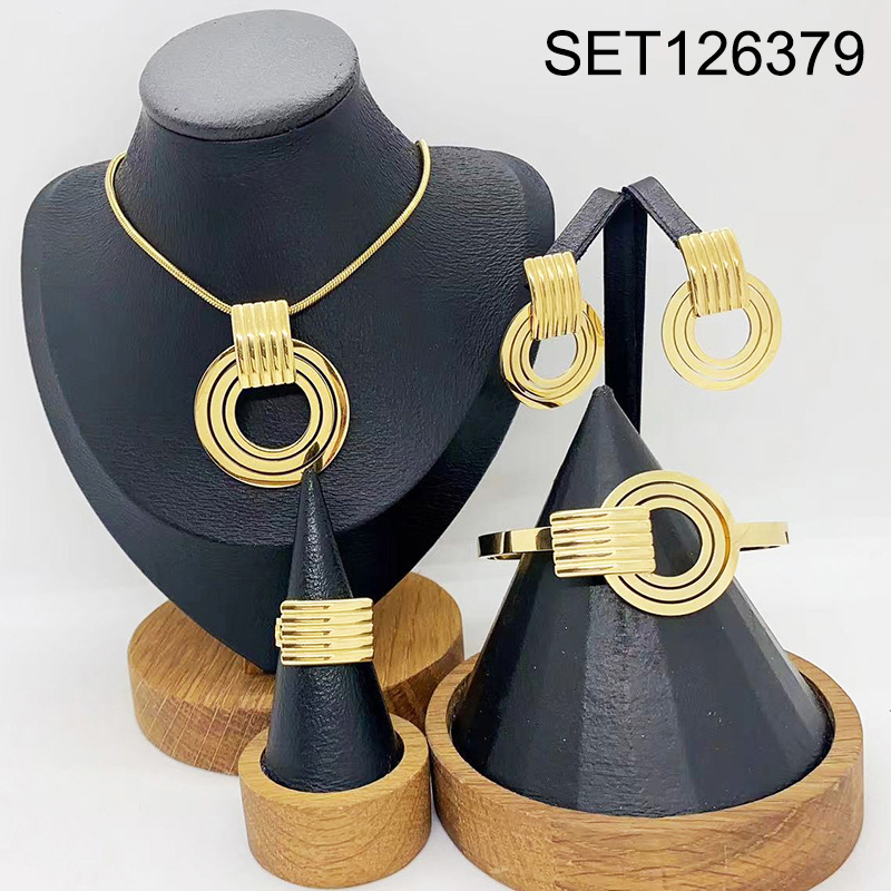 Home > Level B Stainless Steel New Trendy Women Jewelry Rectangle Round Golden 4pcs SET