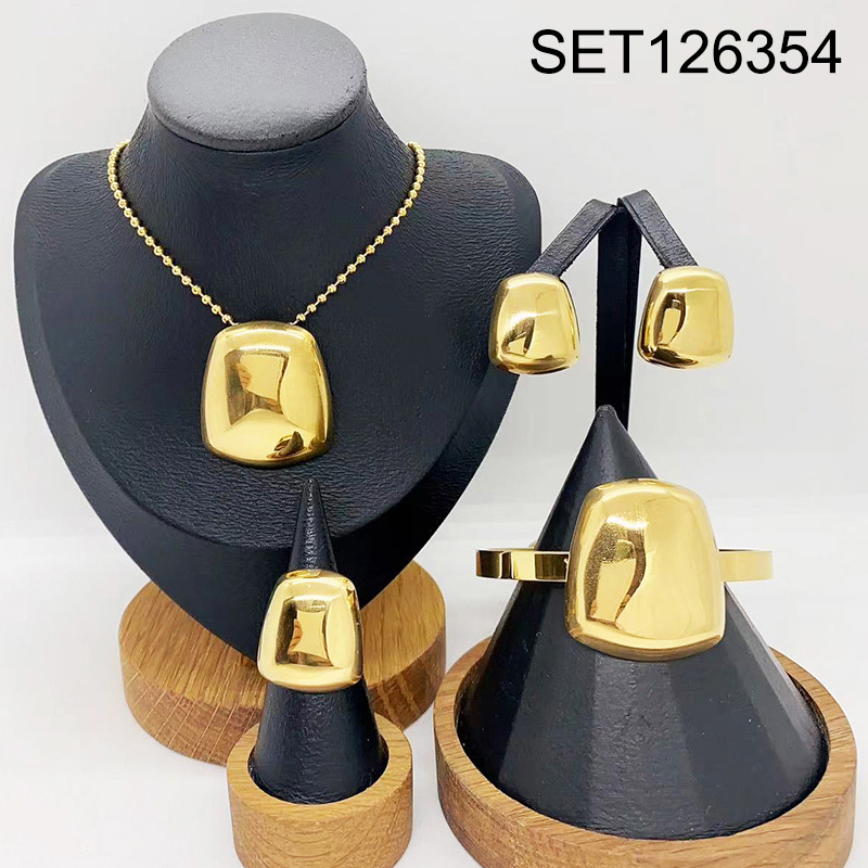 Level B Stainless Steel New Trendy Women Jewelry Geometry Golden 4pcs SET
