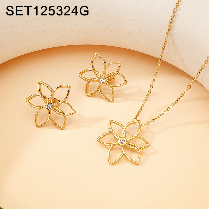 Home > Level A Stainless Steel New Trendy Women Jewelry Flower Golden SET