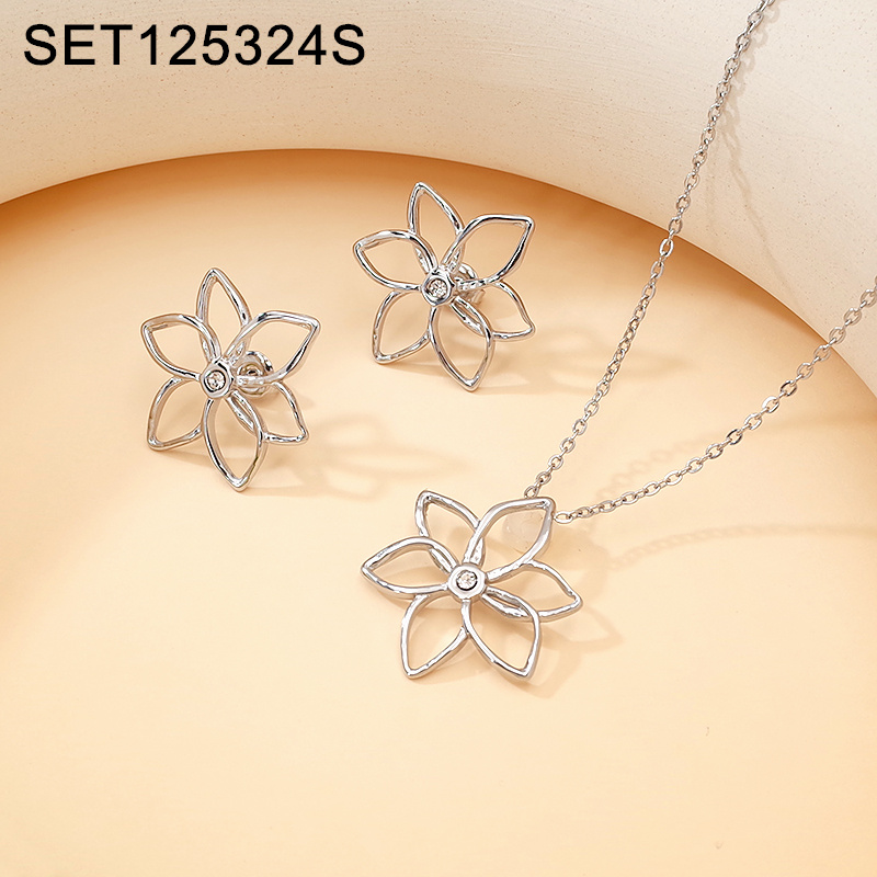 Home > Level A Stainless Steel New Trendy Women Jewelry Flower Steel color SET