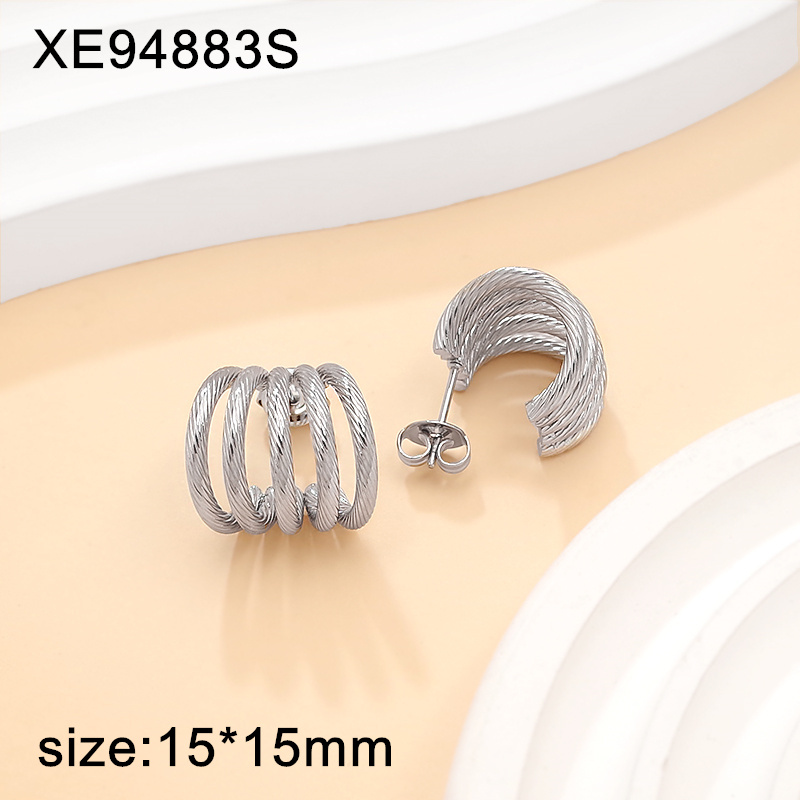 Level A Stainless Steel New Trendy Women Jewelry Steel color C-Shape Style Earrings