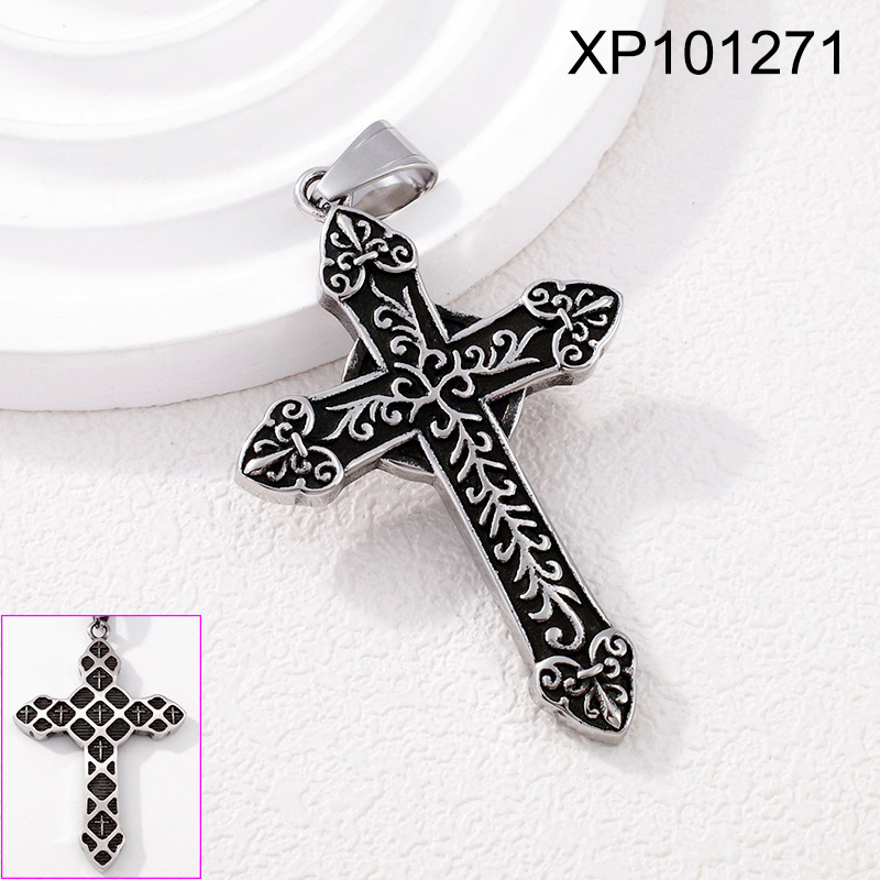 Level B Stainless Steel New Trendy Man Jewelry Punk Rock Vintage Steel color Cross Pendant