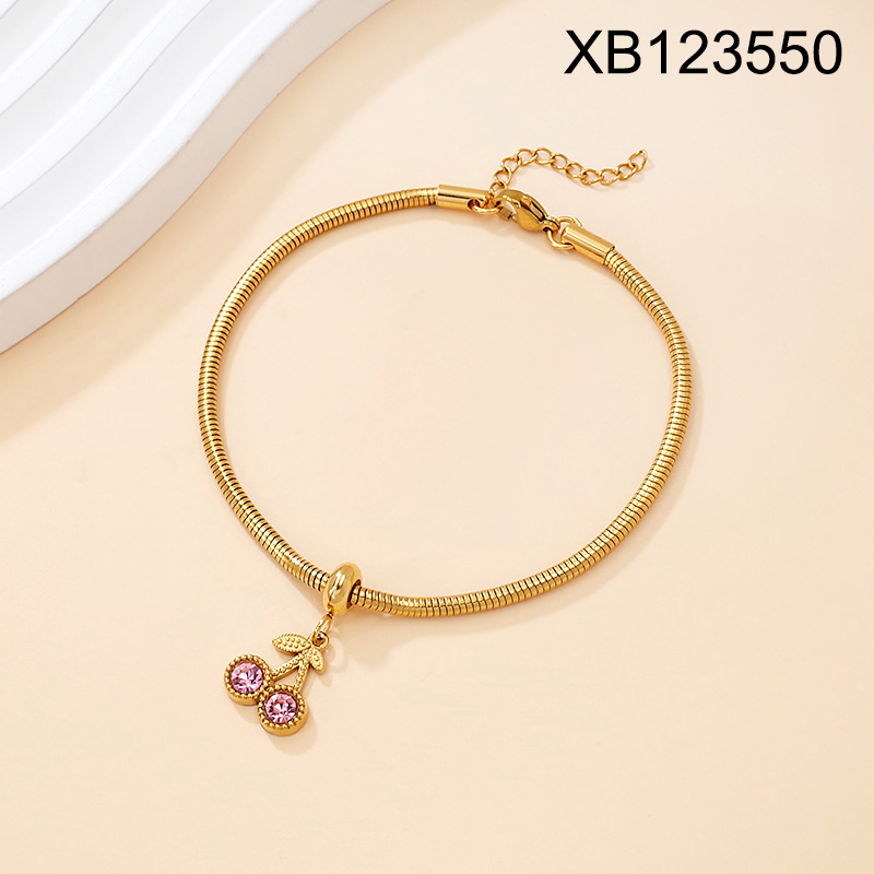 Level B Stainless Steel New Trendy Women Jewelry Summer fruit style Cherry Golden Bracelet