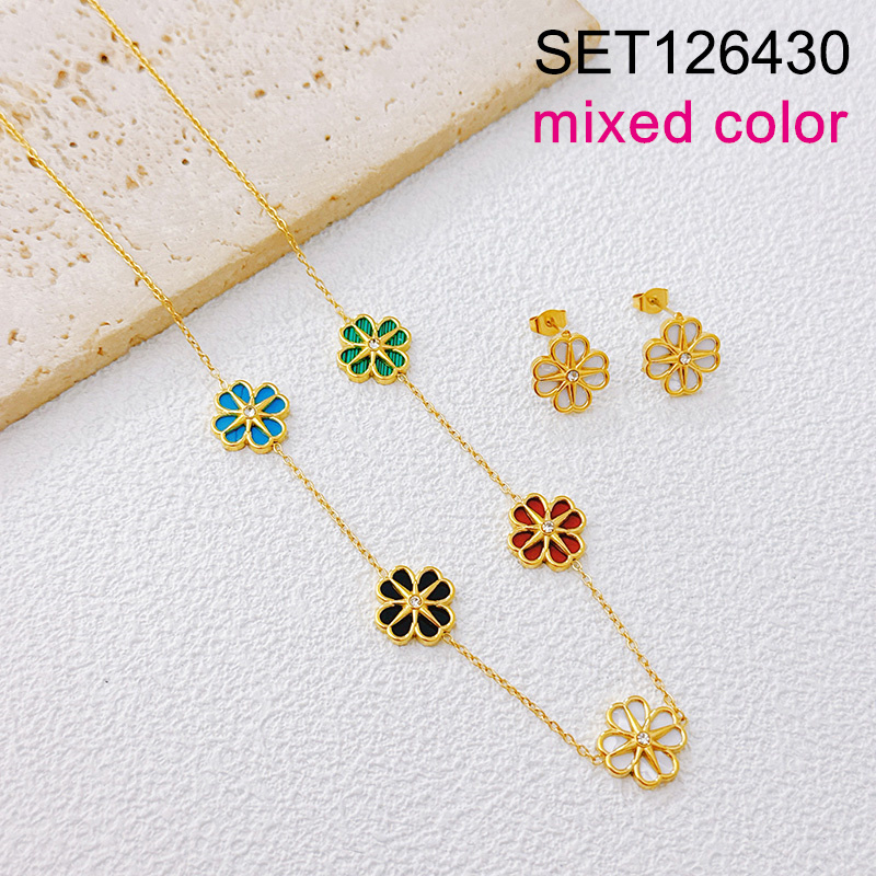Level B Stainless Steel New Trendy Women Jewelry Mixed color SYC Eight-Pointed Star Golden SET