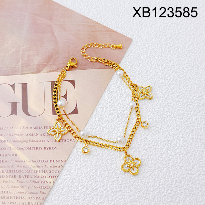 Level B Stainless Steel New Trendy Women Jewelry Pearl Style/Plastic Beads Two Layers Chain SYC Eight-Pointed Star Golden Bracelet
