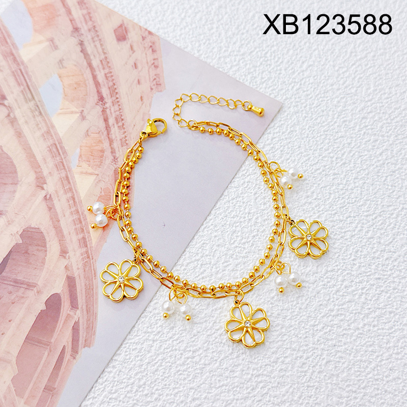 Level B Stainless Steel New Trendy Women Jewelry Pearl Style/Plastic Beads Two Layers Chain SYC Eight-Pointed Star Golden Bracelet