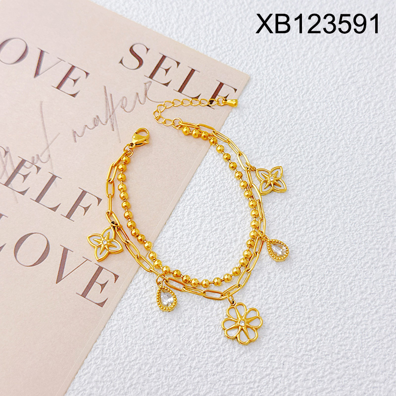 Level B Stainless Steel New Trendy Women Jewelry Two Layers Chain SYC Eight-Pointed Star Golden Bracelet