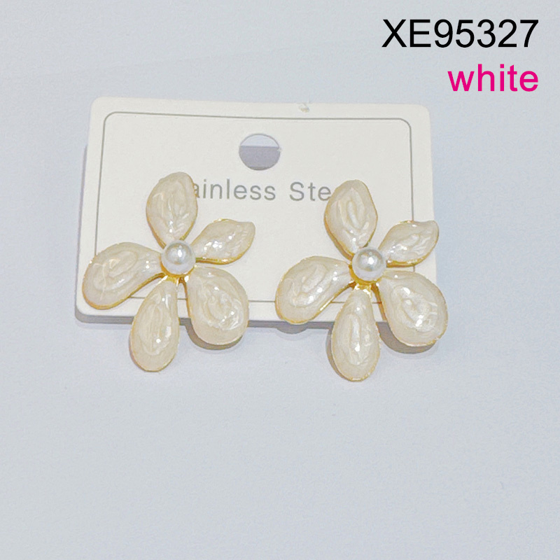 Home > Level C Stainless Steel New Trendy Women Jewelry Pearl Style/Plastic Beads Drip Oil/Enamel White Flower Golden Earrings
