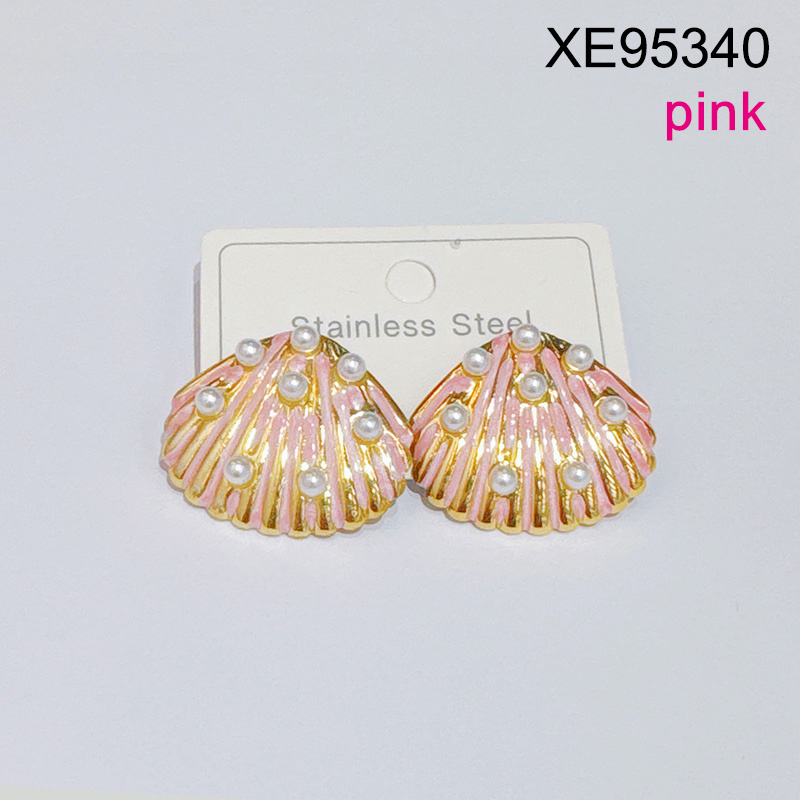 Home > Level C Stainless Steel New Trendy Women Jewelry Pearl Style/Plastic Beads Drip Oil/Enamel Summer beach Pink Animal Shell Golden Earrings