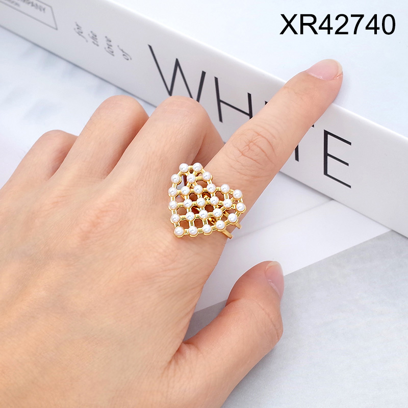 Level B Stainless Steel New Trendy Women Jewelry Pearl Style/Plastic Beads Heart Golden Open Rings;Ring size can be adjusted freely