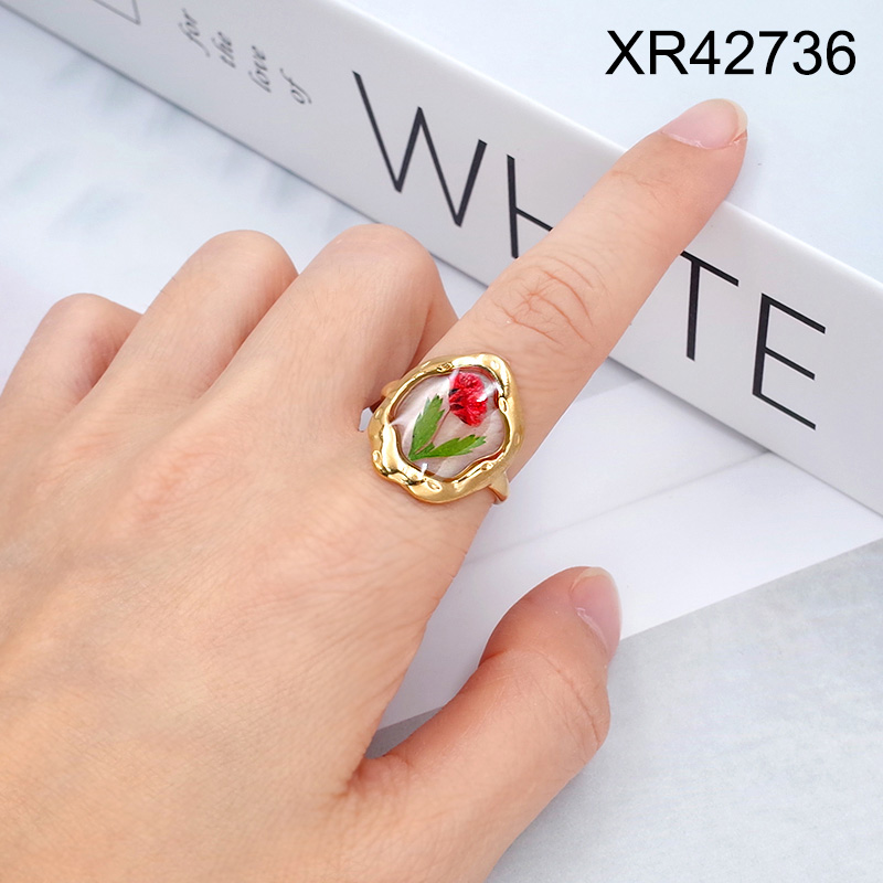 Level B Stainless Steel New Trendy Women Jewelry Oval Flower Golden Open Rings;Ring size can be adjusted freely