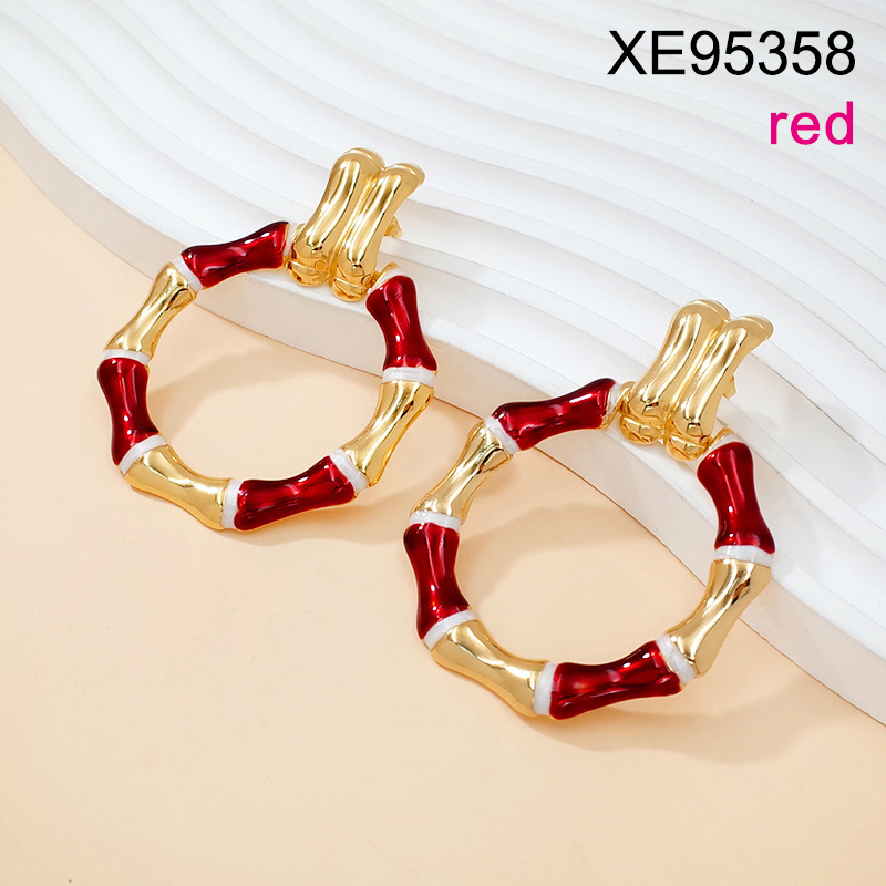 Home > Level B Stainless Steel New Trendy Women Jewelry Drip Oil/Enamel Red Geometry Golden Earrings