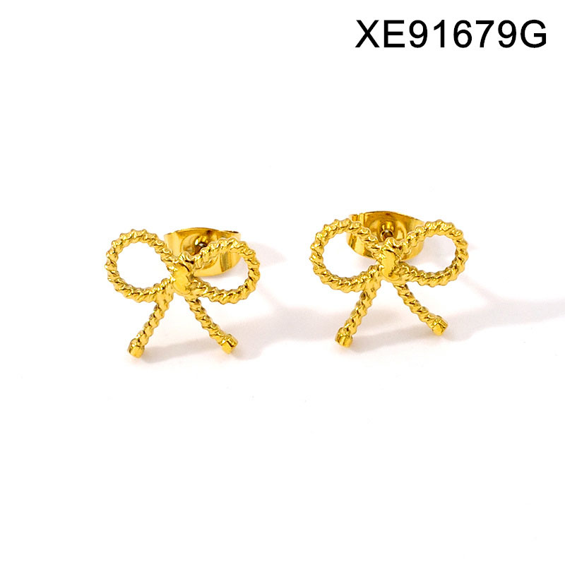 Home > Level A Stainless Steel Jewelry New Trendy Bowknot Golden Earrings