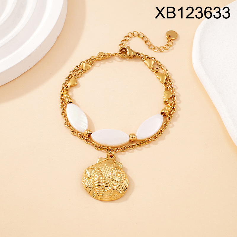 Home > Level B Stainless Steel New Trendy Women Jewelry Two Layers Summer beach Animal Shell Conch Starfish Golden Bracelet