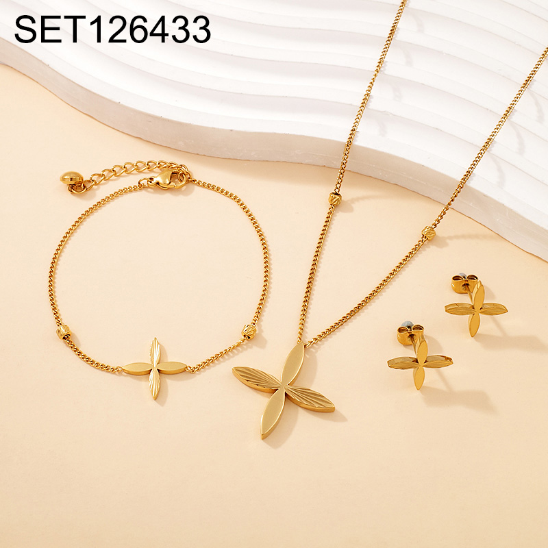 Level A Stainless Steel New Trendy Women Jewelry Windmill Golden 3pcs SET