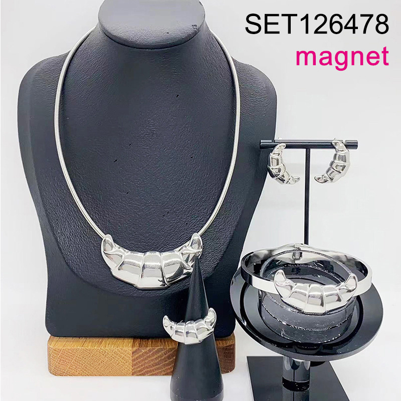 Level B Stainless Steel New Trendy Women Jewelry Steel color Magnet buckle 4pcs SET