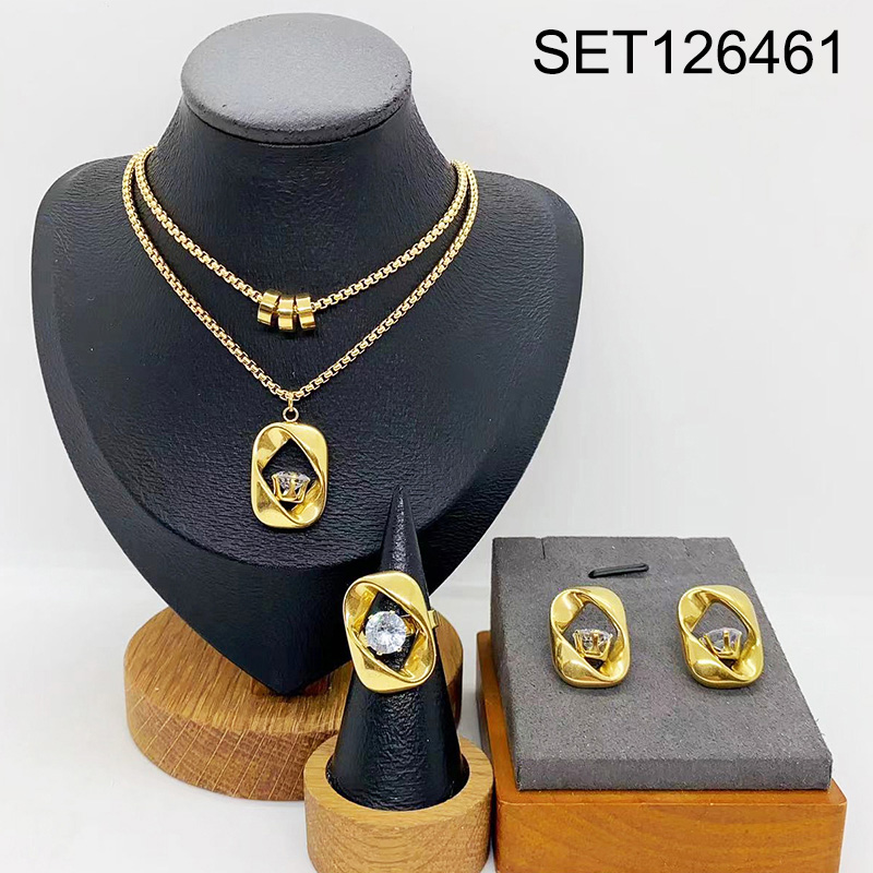 Level B Stainless Steel New Trendy Women Jewelry Two Layers Chain Golden 3pcs SET