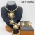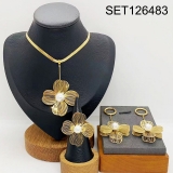 Level B Stainless Steel New Trendy Women Jewelry Pearl Style/Plastic Beads Leaf Flower Golden 3pcs SET