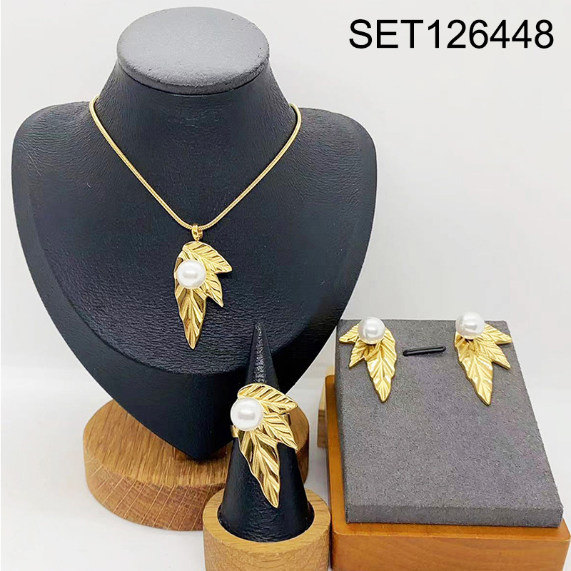 Level B Stainless Steel New Trendy Women Jewelry Pearl Style/Plastic Beads Leaf Golden 3pcs SET