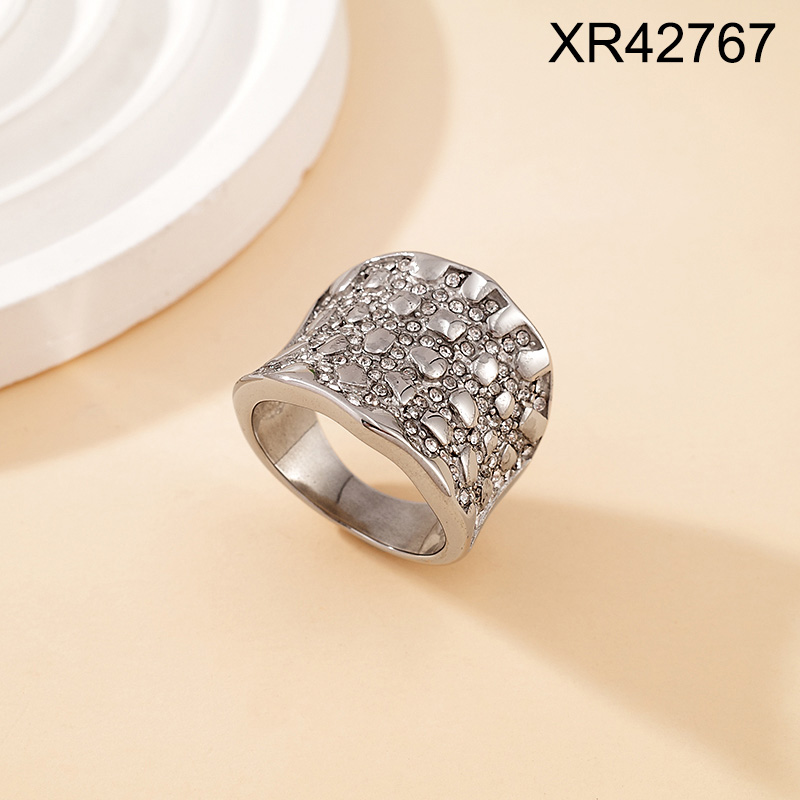 Level B Stainless Steel New Trendy Women Jewelry Sticky Stone Steel color Casting Rings