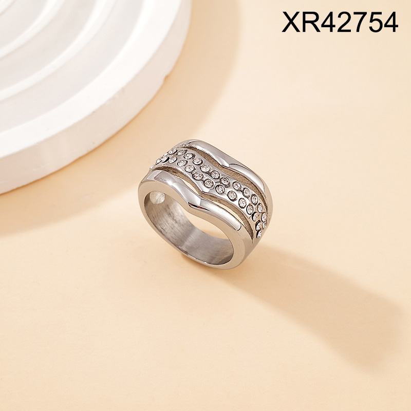 Home > Level B Stainless Steel New Trendy Women Jewelry Sticky Stone Steel color Casting Rings