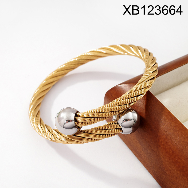 Level B Stainless Steel New Trendy Women Jewelry Two Tone Wire Bangle;Bangle size can be adjusted freely