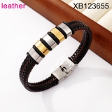 Home > Level B Stainless Steel New Trendy Man Jewelry Two Tone Leather Bracelet