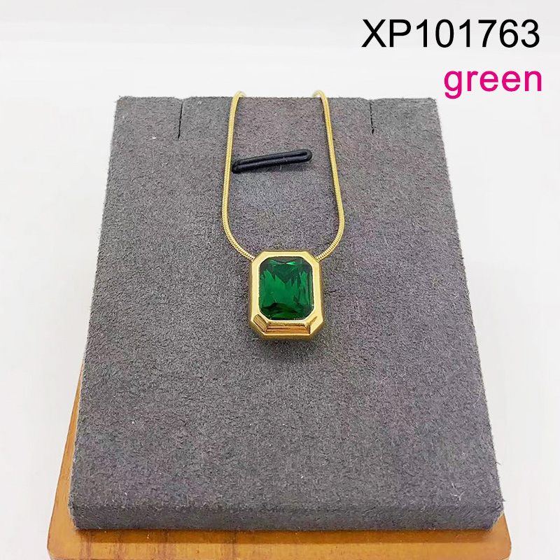 Level B Stainless Steel New Trendy Women Jewelry Rectangle Green Glass Zircon Golden Pendant