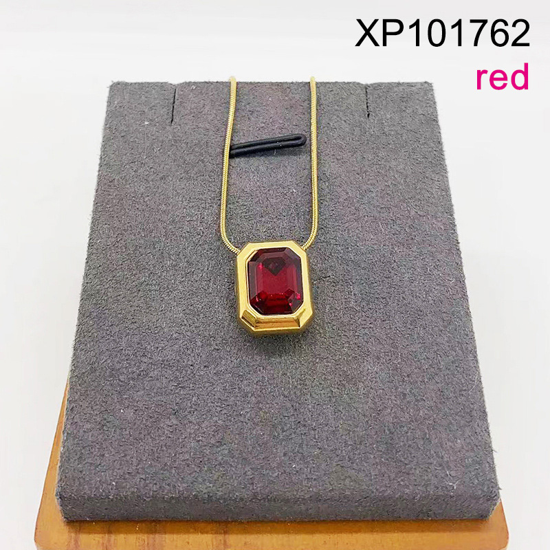 Home > Level B Stainless Steel New Trendy Women Jewelry Rectangle Red Glass Zircon Golden Pendant