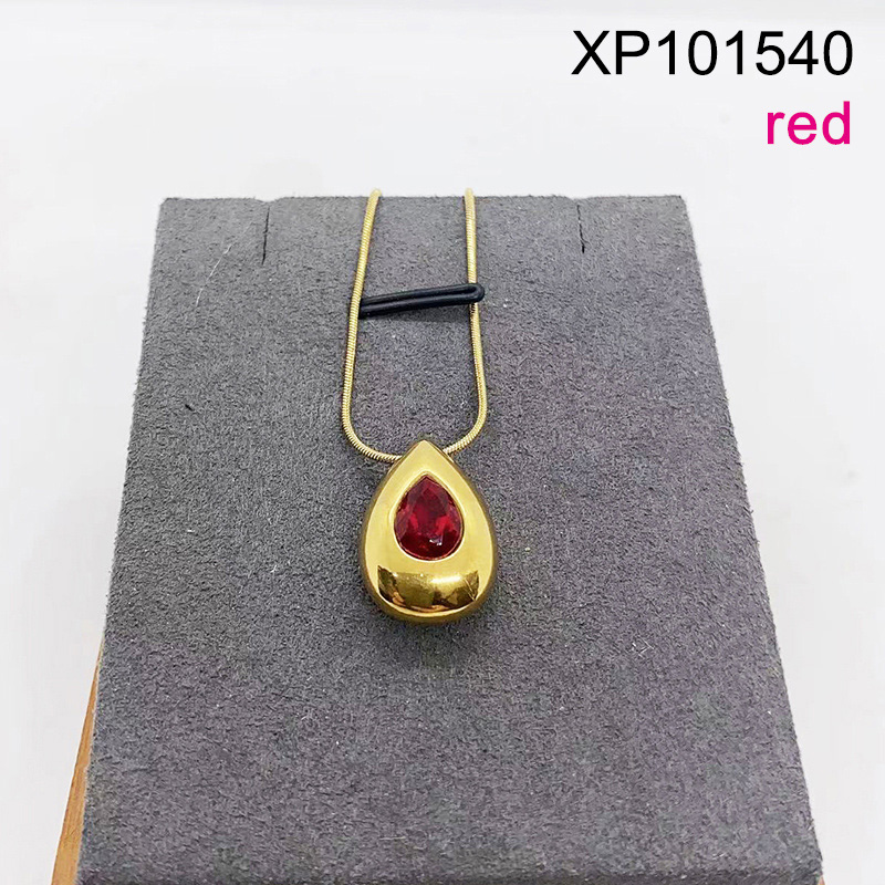 Home > Level B Stainless Steel New Trendy Women Jewelry Water Drip Red Glass Zircon Golden Pendant