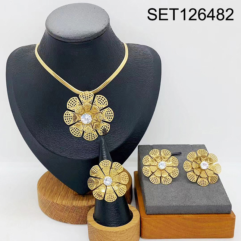 Level B Stainless Steel New Trendy Women Jewelry Flower Golden 3pcs SET