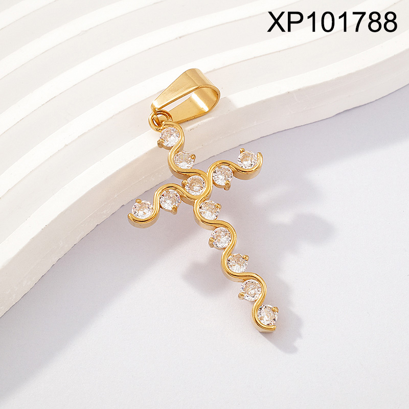 Level B Stainless Steel New Trendy Women Jewelry Round Zircon Cross Golden Casting Pendant