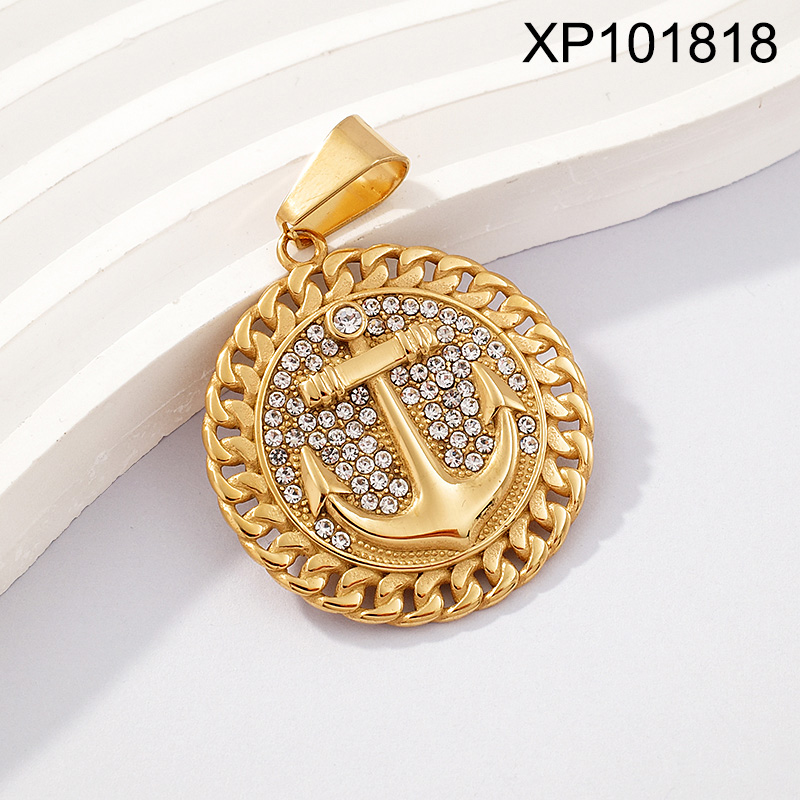 Level B Stainless Steel New Trendy Man Jewelry Round Anchor Golden Casting Pendant