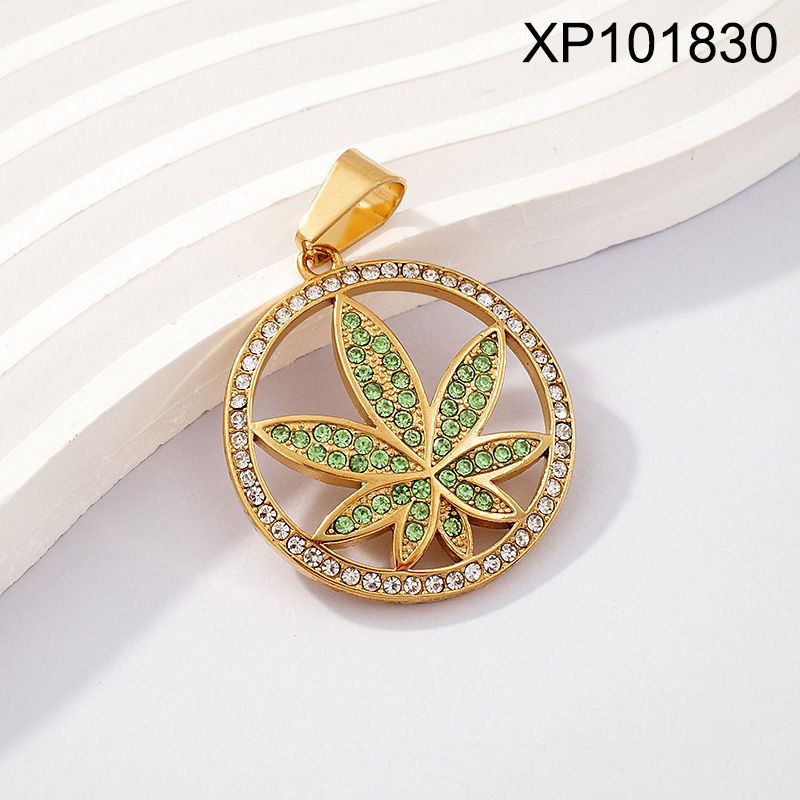 Level B Stainless Steel New Trendy Man Jewelry Round Maple Leaf Golden Casting Pendant