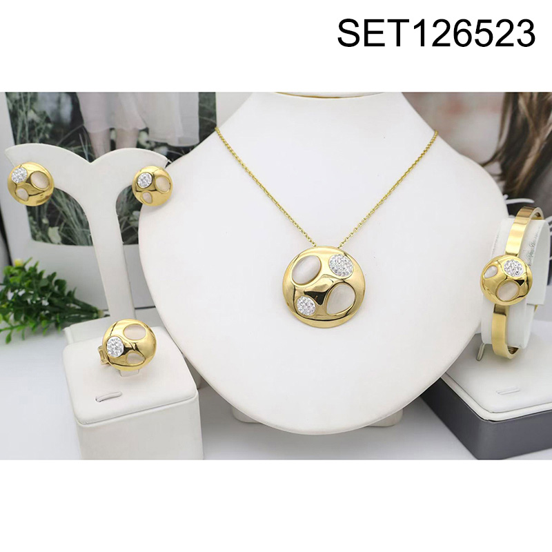 Level B Stainless Steel New Trendy Women Jewelry Round Golden 4pcs SET