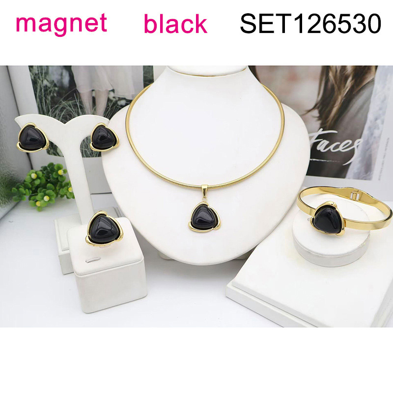 Level B Stainless Steel New Trendy Women Jewelry Triangle Black Opal Golden Magnet buckle 4pcs SET
