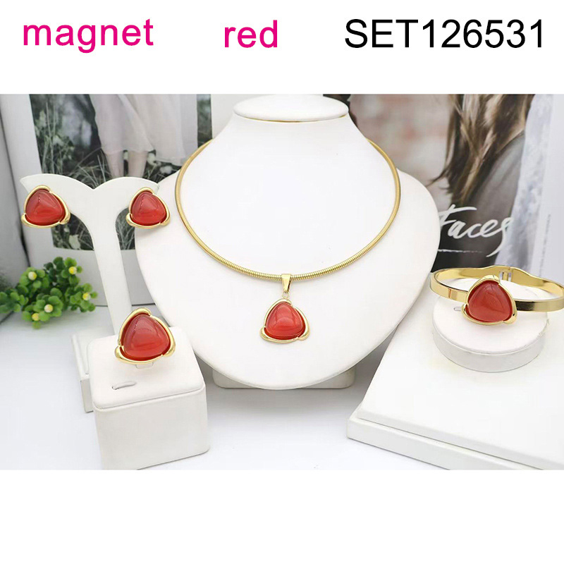Level B Stainless Steel New Trendy Women Jewelry Triangle Red Opal Golden Magnet buckle 4pcs SET